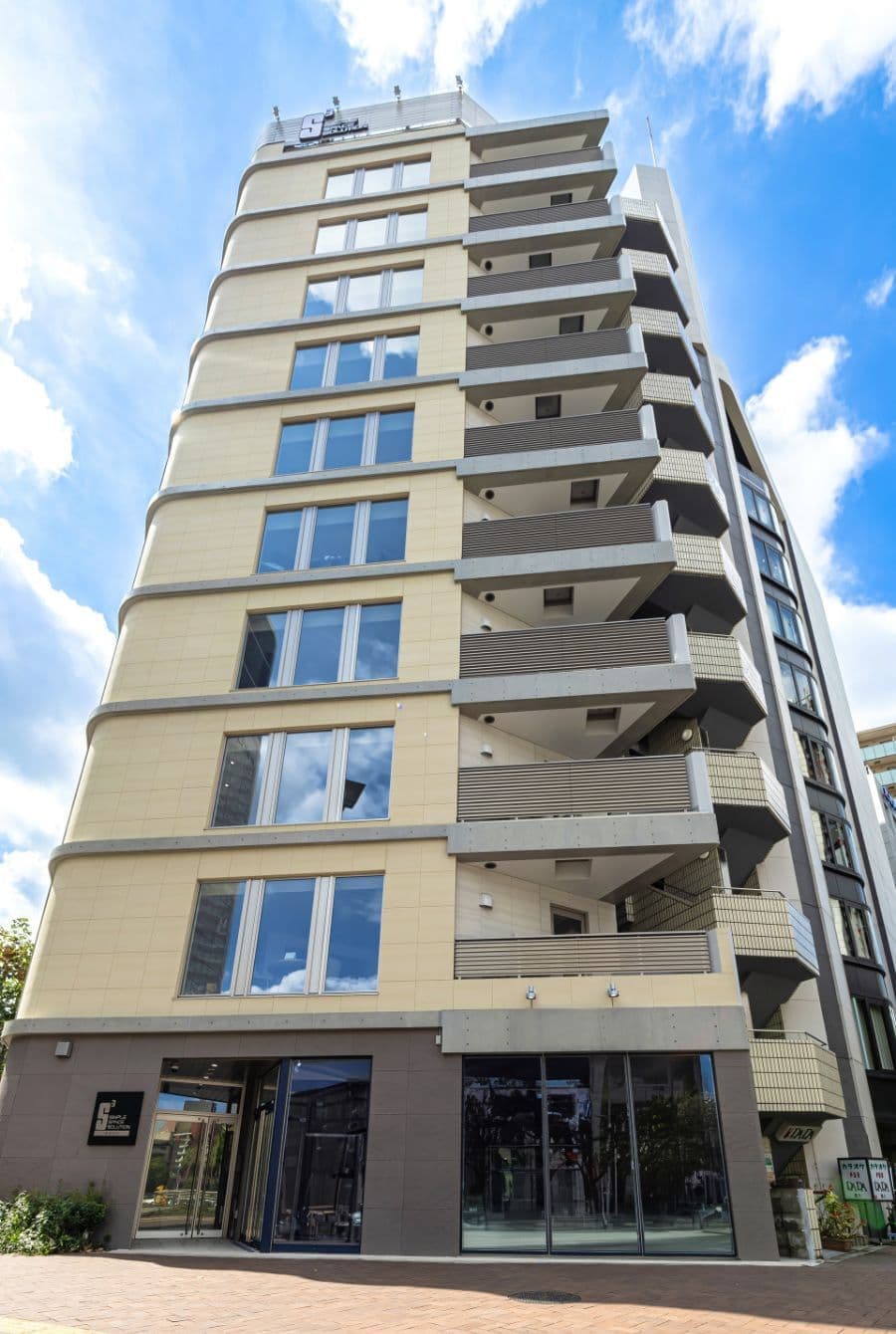 A 10-story commercial and residential building in a prime location near Shinjuku Gyoen.